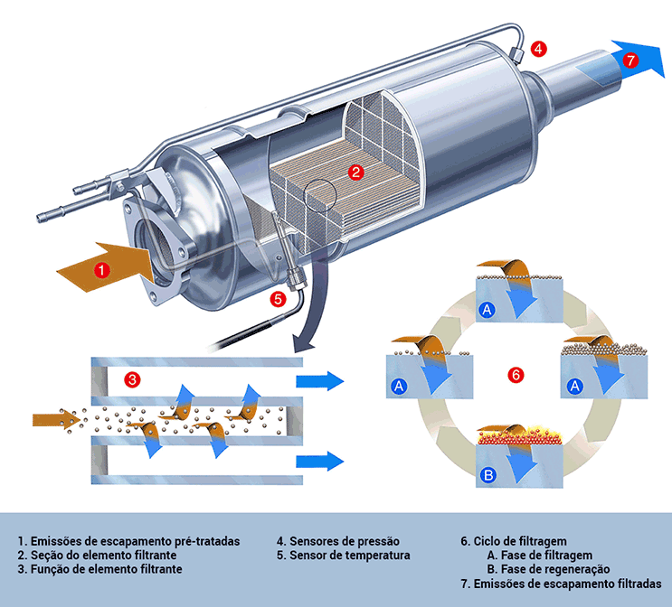 Um DPF retém fisicamente as partículas de fuligem e cinzas numa estrutura de malha ou rede que se encontra no interior do filtro. Tal como acontece com qualquer outro filtro, ele tem que ser esvaziado com regularidade para manter o seu desempenho. Este processo num DPF chama-se ‘regeneração’ onde a fuligem retida é queimada a uma temperatura elevada com o objetivo de deixar apenas um pequeno resíduo de cinzas.