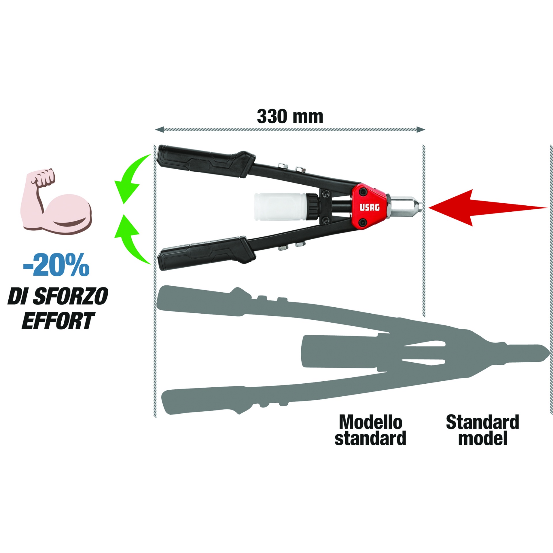 Alicate de Rebitar Manual Compacto e Reto USAG 995 LA | U9950004