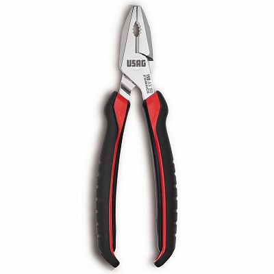 Alicate de ponta metálico com punhos preto e vermelho, texto USAG visível