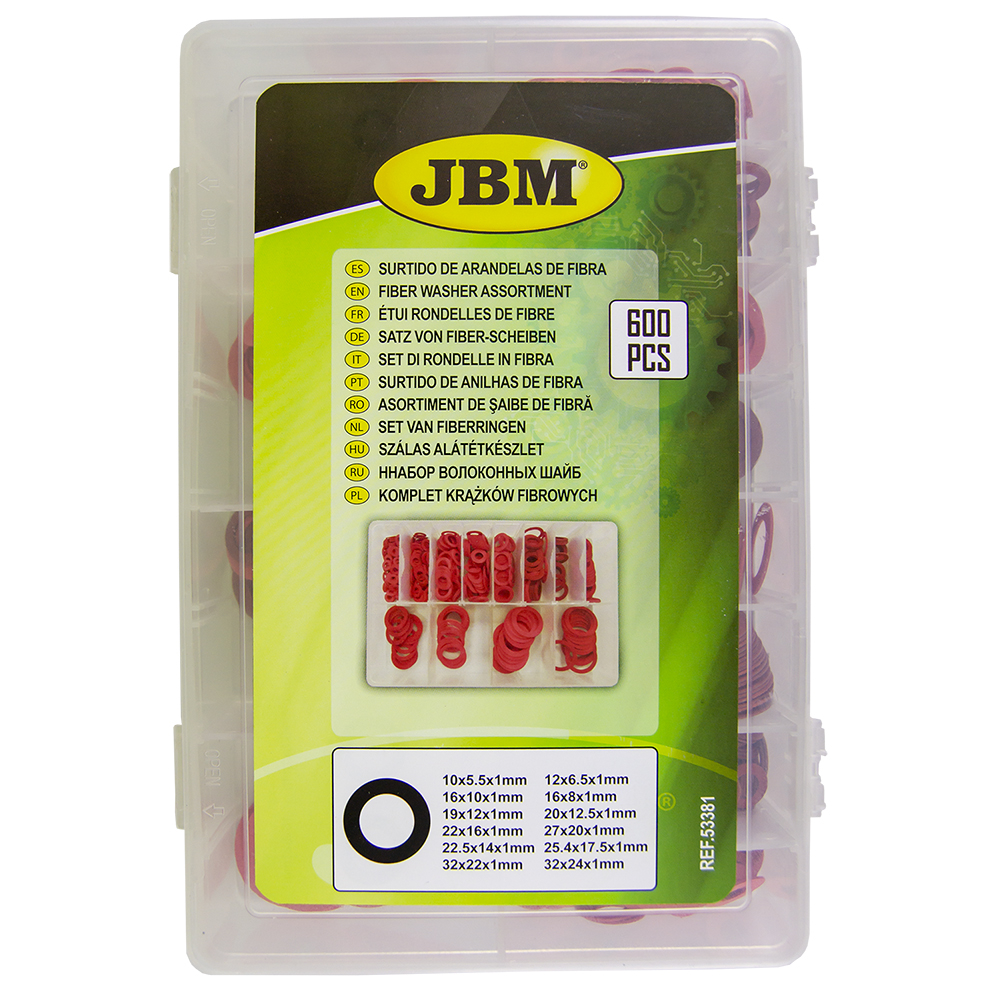 Sortido de Anilhas de Fibra JBM (600 Peças) – Ref. 53381