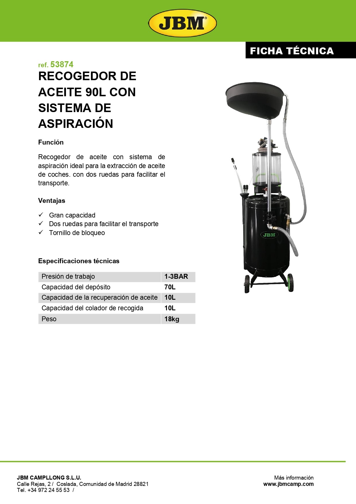 Aparador de óleo 90L com sistema de vácuo JBM 53874