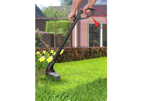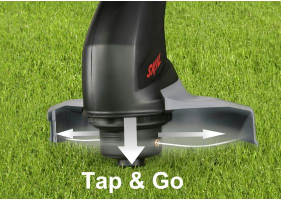 O aparador de relva é perfeitamente equilibrado graças ao seu sistema de corte de dois fios que lhe fornece resultados de corte rápidos e precisos. Equipado com um sistema de alimentação do fio «Tap&Go», este aparador de relva permite uma rápida e fácil alimentação do fio quando necessário. Tudo o que precisa de fazer é pressionar o botão por baixo da bobina do fio sobre o chão e o fio é prolongado automaticamente. A longa linha de 2 x 4 metros permite trabalhar ininterruptamente durante períodos de tempo mais prolongados.