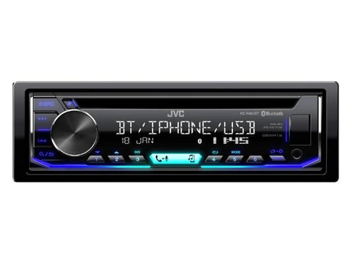 Auto-rádio JVC com CD, USB, Bluetooth, Multicolor KD-T922BT