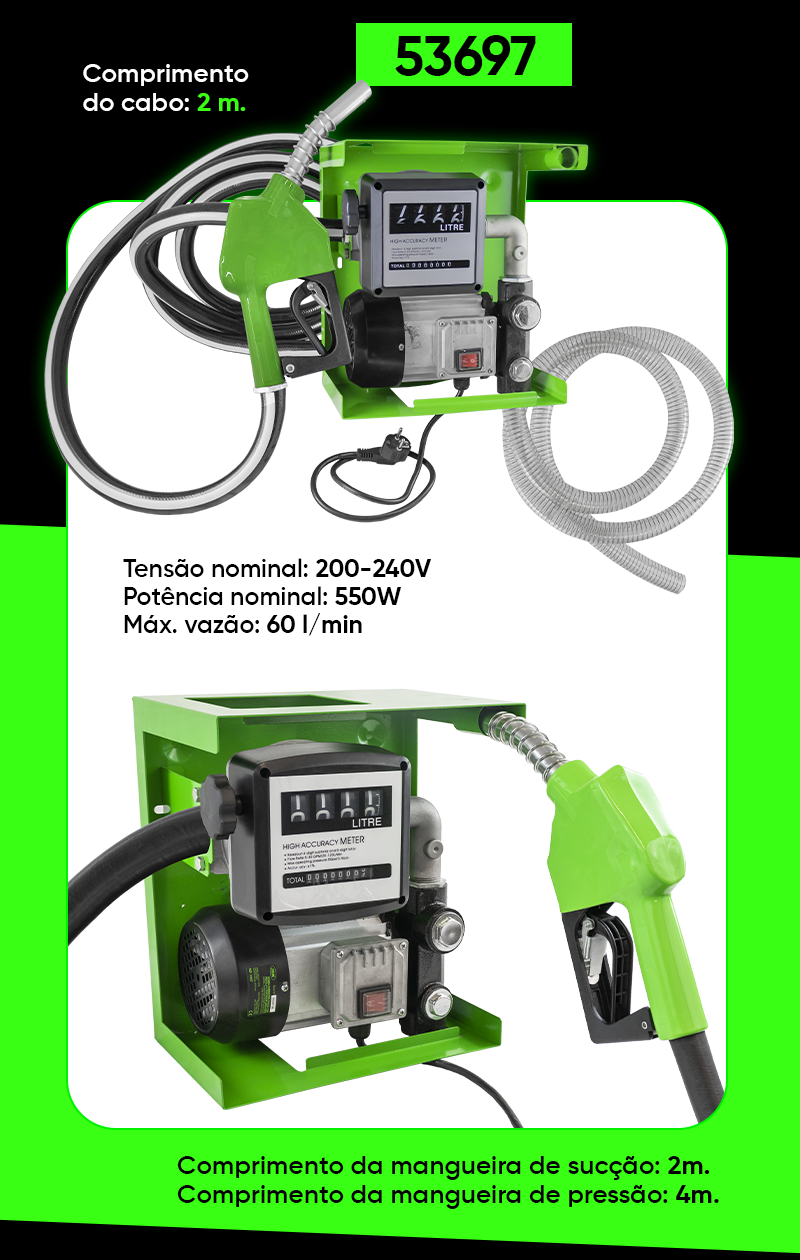 BOMBA DE ABASTECIMENTO DE COMBUSTÍVEL COM PISTOLA E CONTADOR (200V-240V) 53697