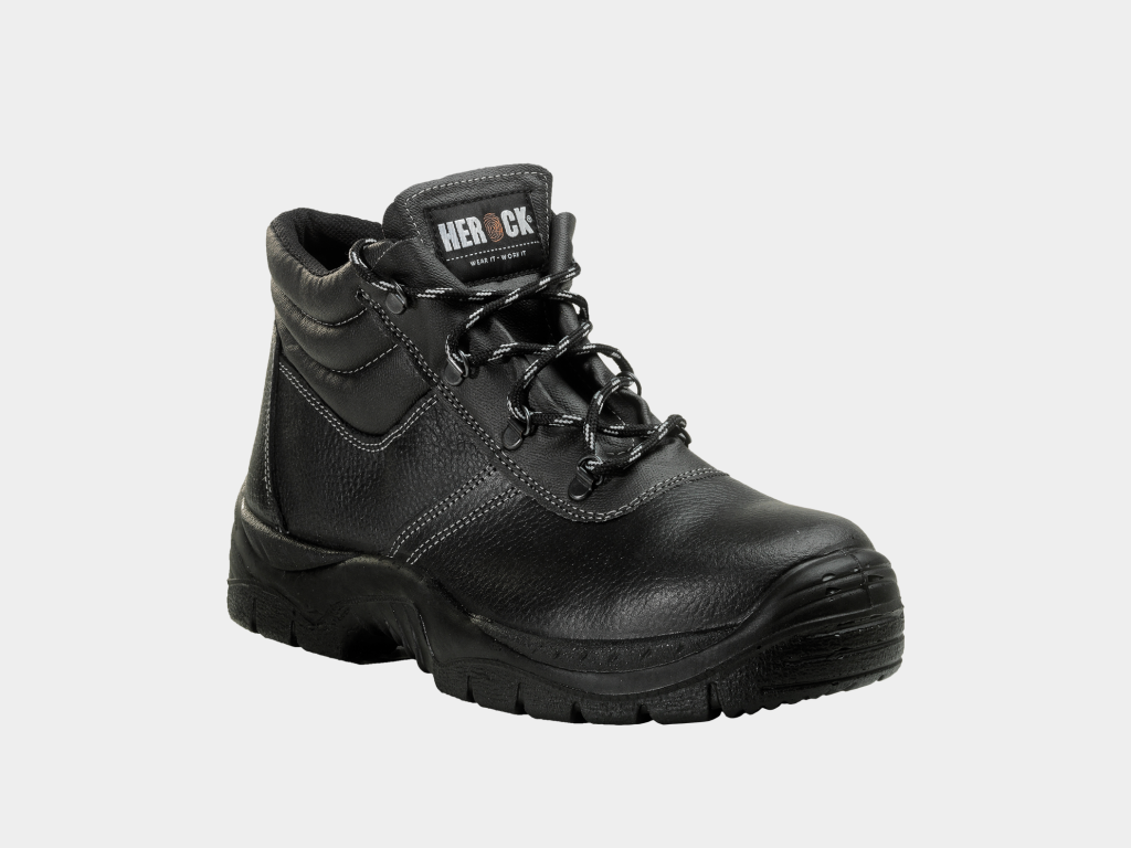 Bota de segurança preta com sola robusta e etiqueta HERCK