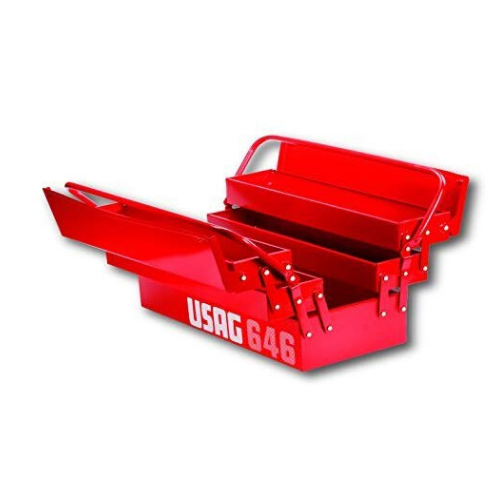 Caixa de ferramentas vermelha metálica aberta com a inscrição USAG 646