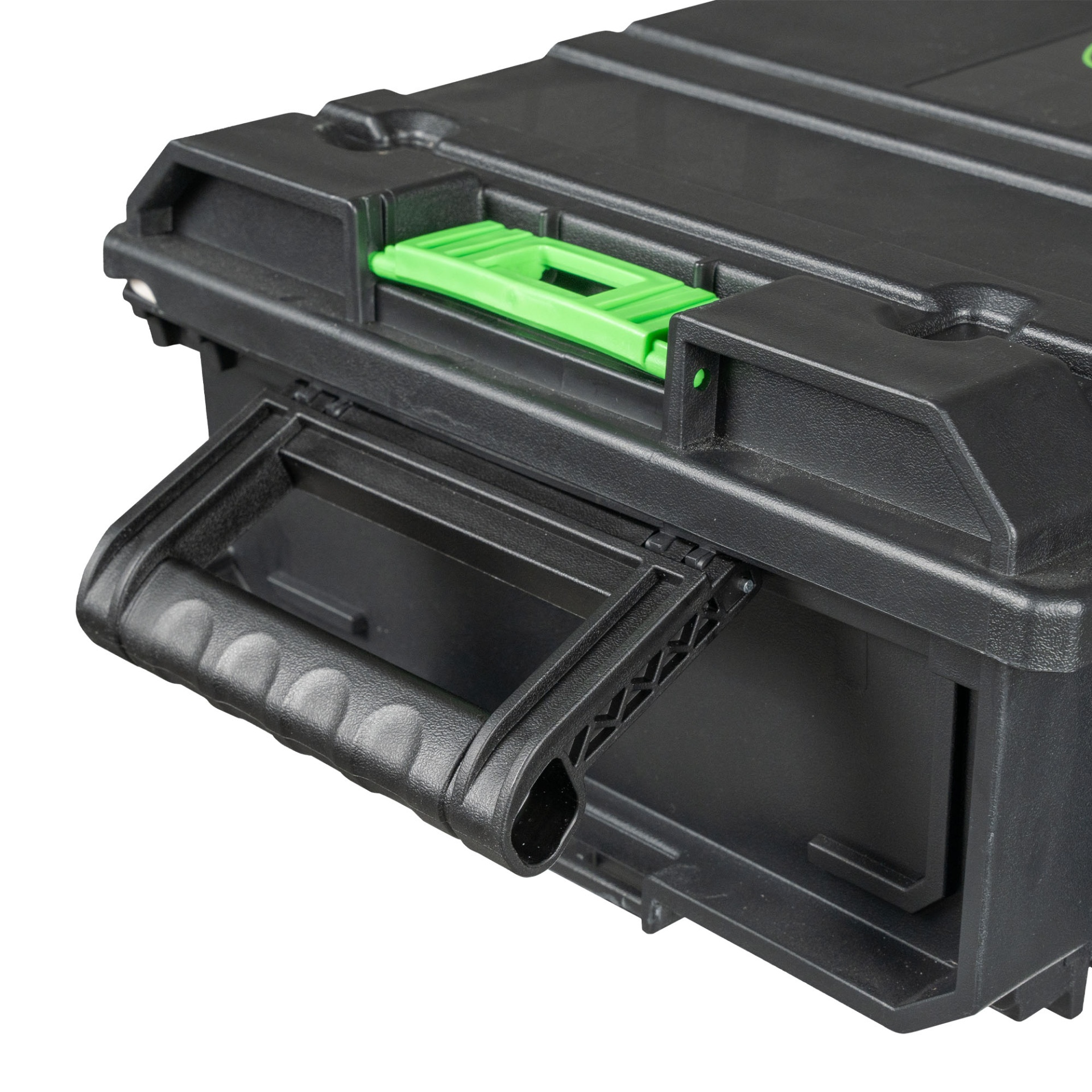 Esta caixa possui dois organizadores com vários compartimentos para classificar uma grande variedade de ferramentas.