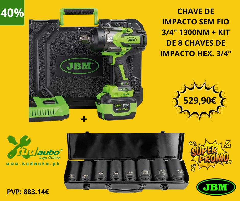 60048C CHAVE DE IMPACTO SEM FIO 3/4" 1300NM + 52347 KIT DE 8 CHAVES DE IMPACTO HEX. 3/4”