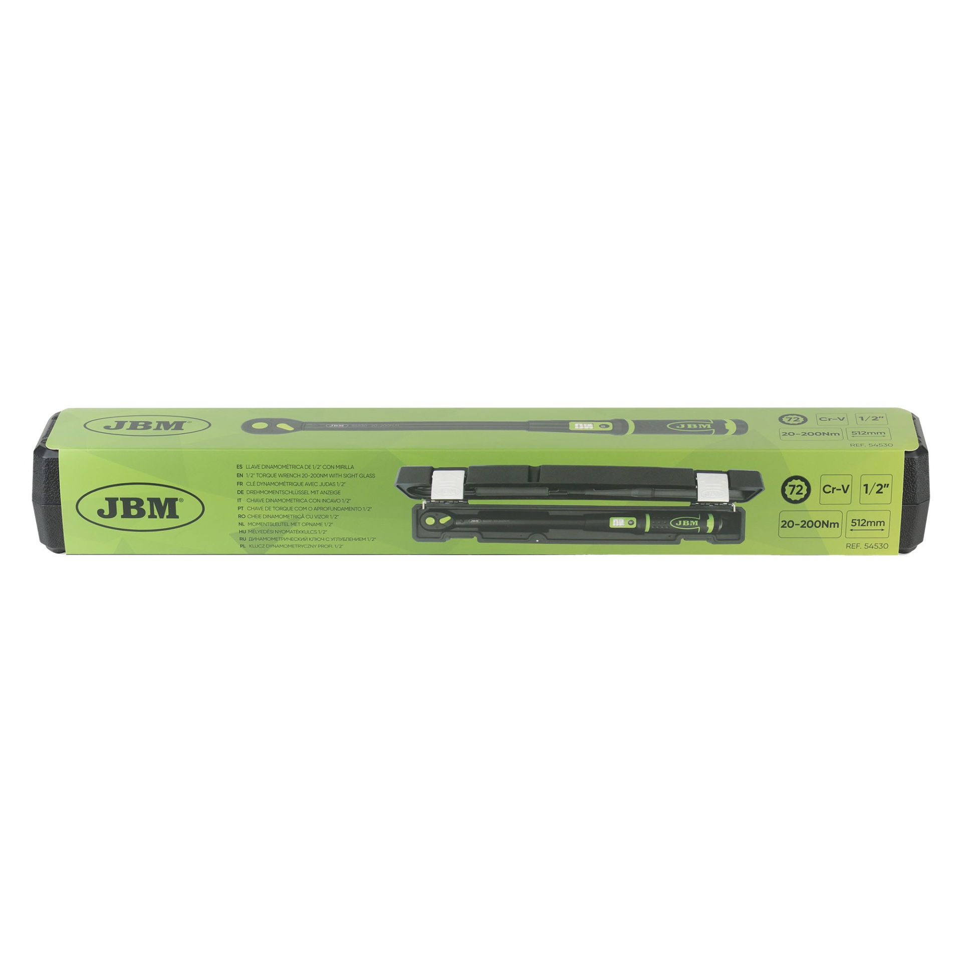 Peças 1 Medida do quadrado 1/2" Material CrMo, Cr Número de dentes 72 Faixa de torque 20-200Nm Precisão (sentido horário) 3% Unidades de medida Nm Comprimento 515mm Peso 1,30Kg