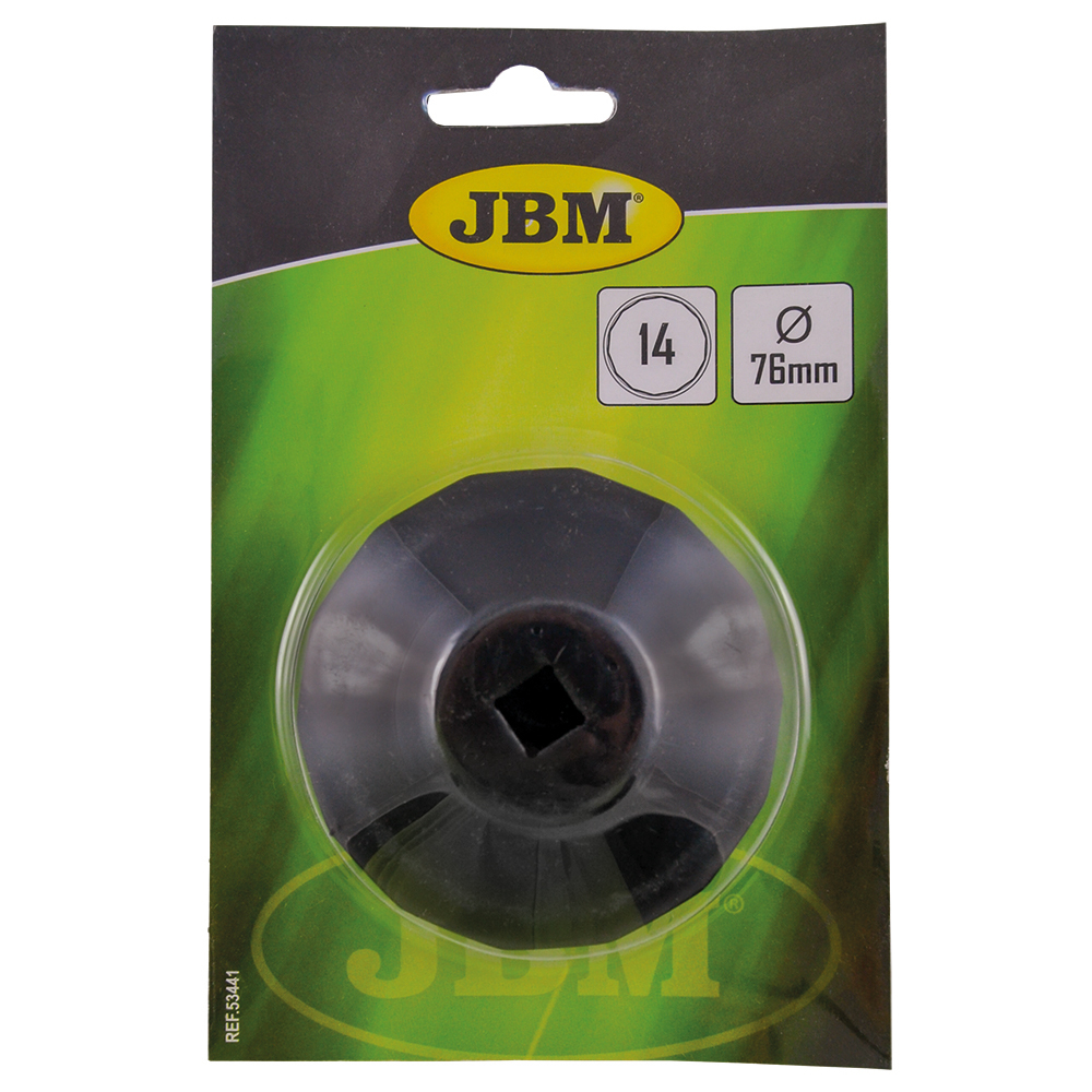 Ferramenta preta em embalagem verde com texto JBM 14 Ø 76 mm