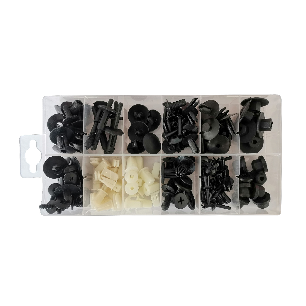Estojo com clips e rebites de plástico pretos e brancos para automóveis