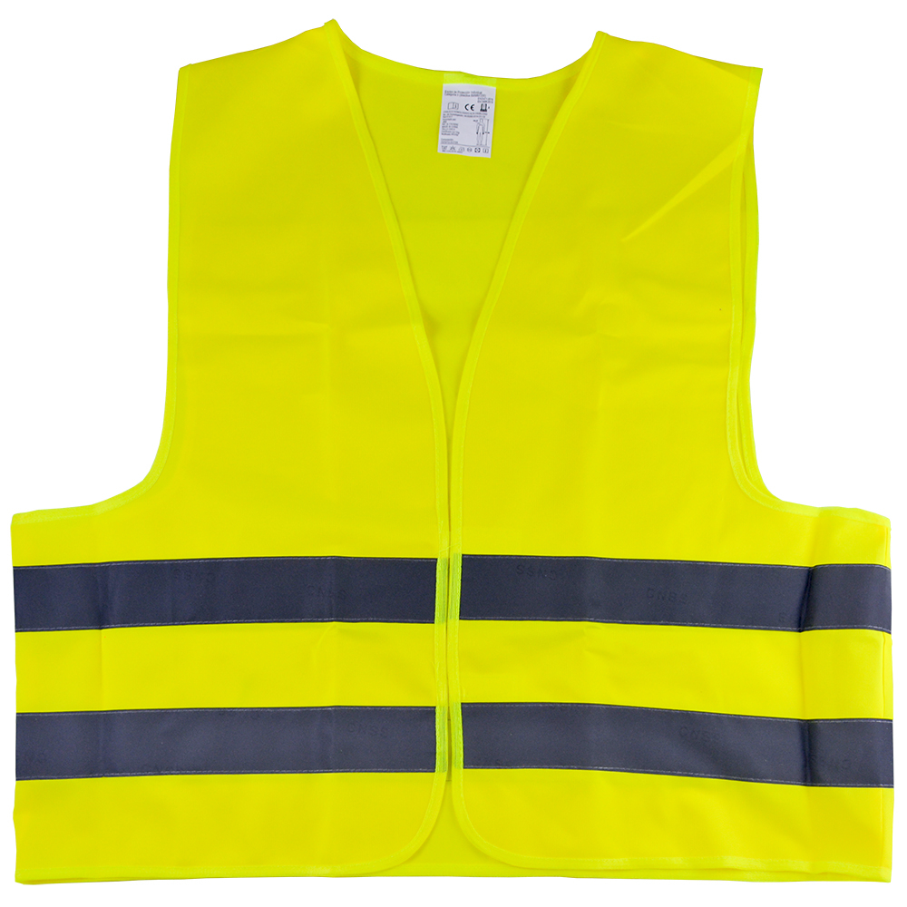Colete de segurança amarelo fluorescente com faixas refletoras cinzentas