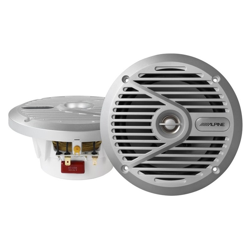 SPS-M601W - Alto-falante coaxial de 2 vias (16,5 cm) O excelente desempenho de áudio e durabilidade excepcional da nova linha de produtos marítimos da Alpine baseiam-se em mais de 30 anos de experiência na indústria de áudio automotivo. Dentro do barco e/ou na cabine: Os altifalantes coaxiais de gama marítima Alpine SPS-M601/SPS-M601W de 2 vias (16,5 cm) implementam de forma eficiente a potência das unidades principais da gama marítima Alpine. O SPS-M601/SPS-M601W combina excelente desempenho de áudio com extraordinária durabilidade adequada para aplicações marítimas. CARACTERÍSTICAS Tipo de crossover do divisor de frequência: Construído com proteção de tweeter Estrutura de graves: Estrutura em ABS de alta temperatura Material do cone: Poli-Mica Tipo de grelha de cone: