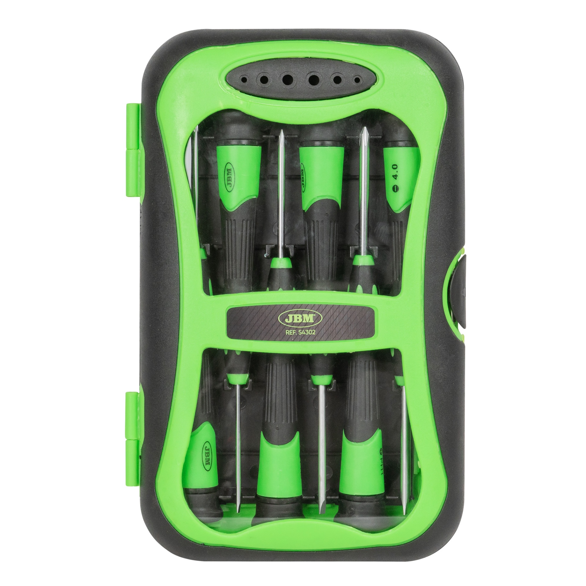 Conjunto de chave de fenda de precisão em estojo verde e preto
