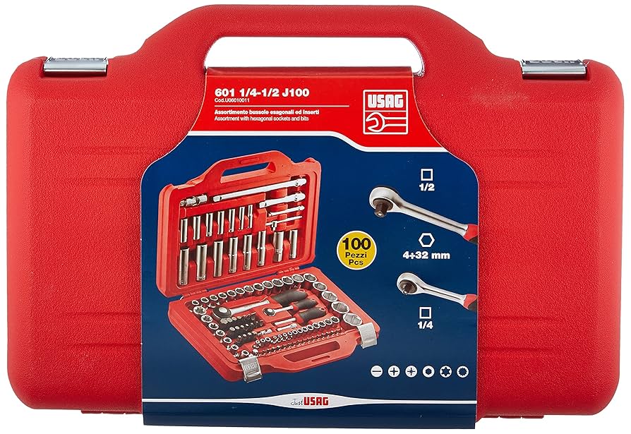 Conjunto de 100 chaves profissionais de caixa sextavadas USAG 601 - 1/4 - 1/2" J100 | U06010011