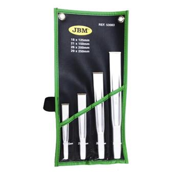 Conjunto de quatro ferramentas brancas em bainha preta com bordas verdes e texto JBM REF. 53003
