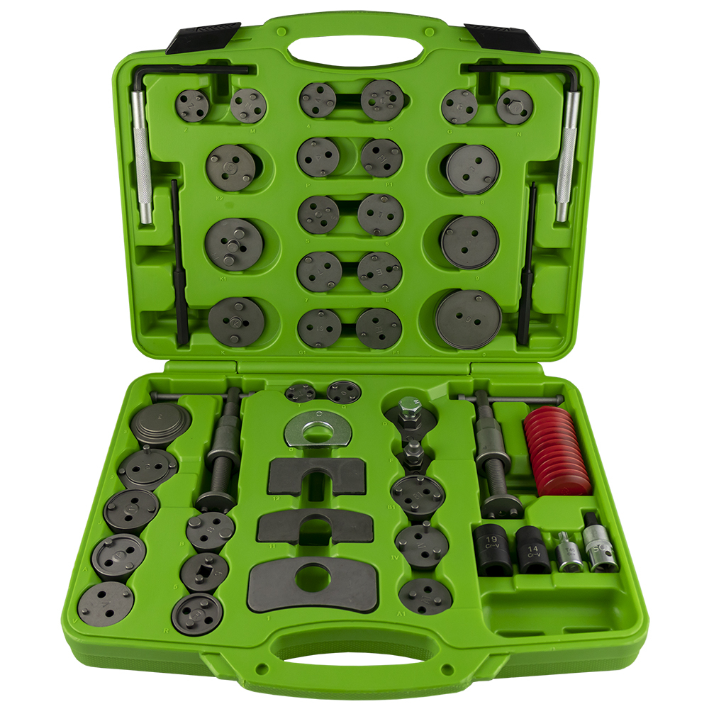 Estojo verde com conjunto de ferramentas para pistões de travão