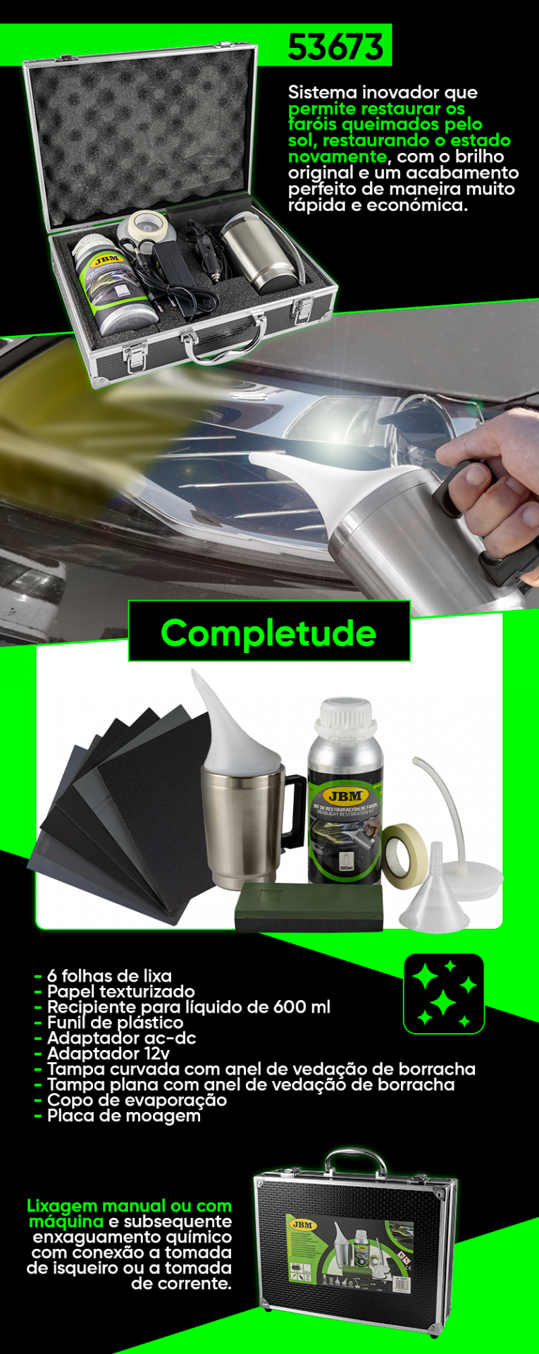 CONJUNTO DE RESTAURAÇÃO DE FARÓIS POR POLIMERIZAÇÃO | JBM 53673