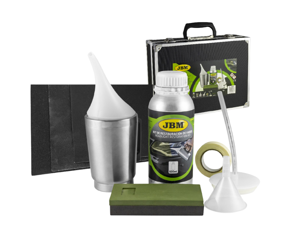 O kit de restauração de faróis JBM com polímero líquido é um sistema inovador que permite restaurar os faróis queimados pelo sol, restaurando o estado novamente, com o brilho original e um acabamento perfeito de maneira muito rápida e económica.