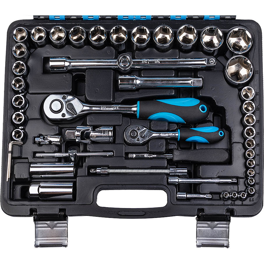 17 peças. Soquetes curtos de 1/2": 10, 11, 12, 13, 14, 15, 16, 17, 18, 19, 20, 21, 22, 24, 27, 30, 32 mm;