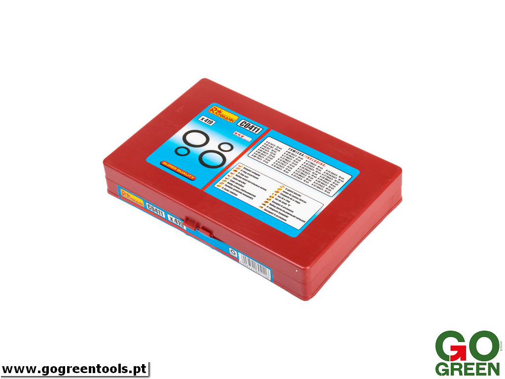 Conjunto de O-rings 419 elementos da marca Richmann (antiga Corona) . O conjunto funcionará em oficinas de automóveis, mecânica e serralheria.