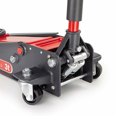 Macaco hidráulico para 3 t para automóveis e veículos comerciais. • Estrutura em aço • Versátil e compacto para uso em espaços estreitos • Sistema de duas bombas para uma elevação mais rápida do veículo • Equipado com pedal de elevação • Equipado com controlo de descida manual • Válvula de purga de ar, para evitar o risco de sobrecarga • Pega com amortecedor de borracha • Rodas de poliuretano • Disco de borracha: código DL.324-10 • Rodas dianteiras (2 peças): código DL.32A-1 • Rodas traseiras (2 peças): código DL.32A-9