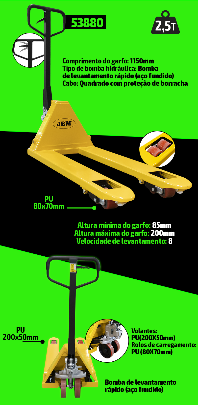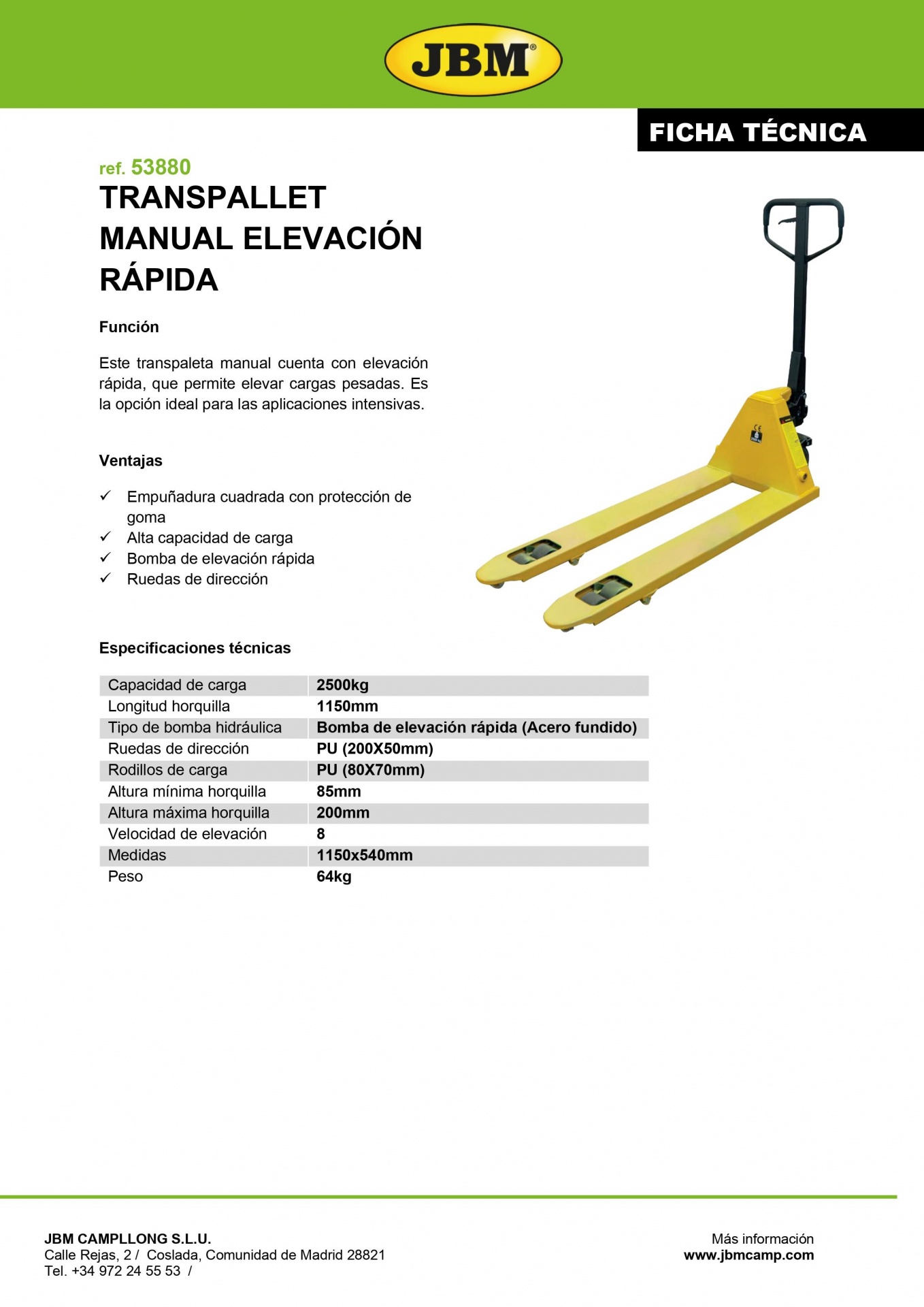 Elevador rápido manual porta paletes 2500kg JBM 53880
