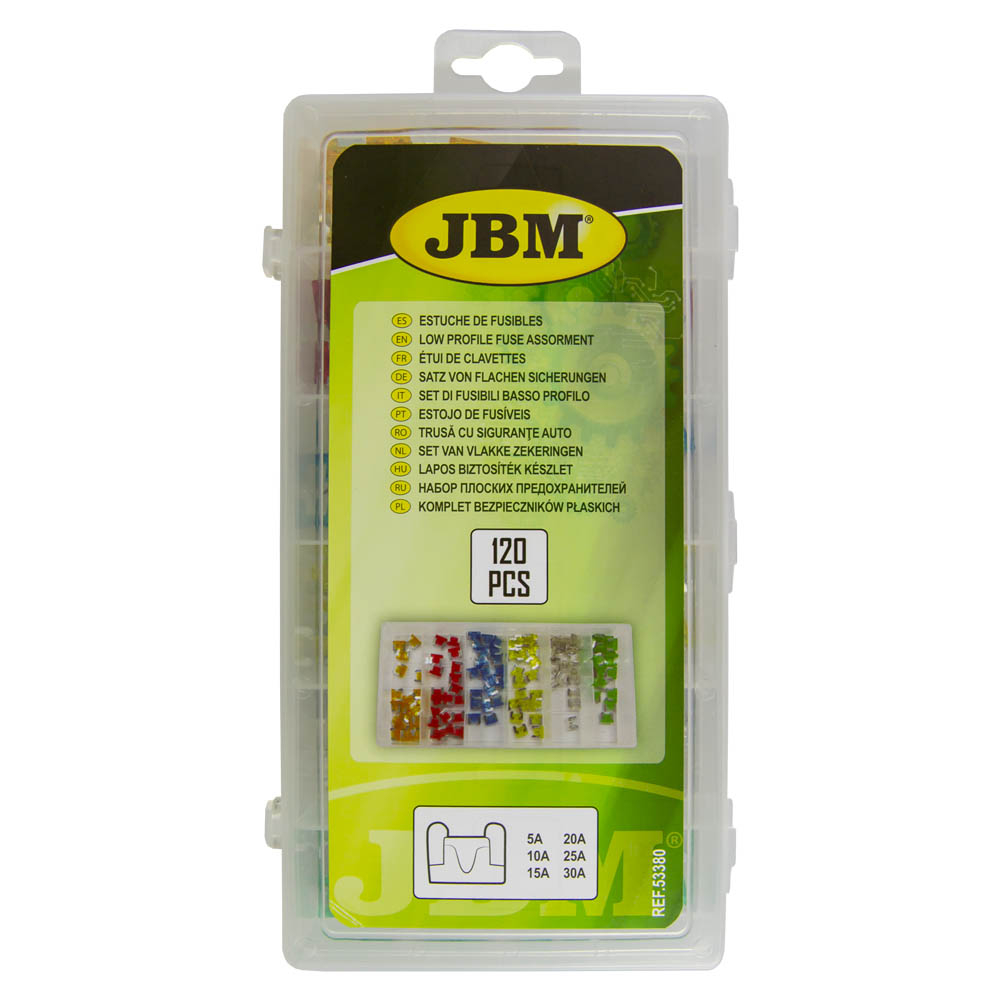 Estojo plástico com 120 fusíveis automotivos coloridos