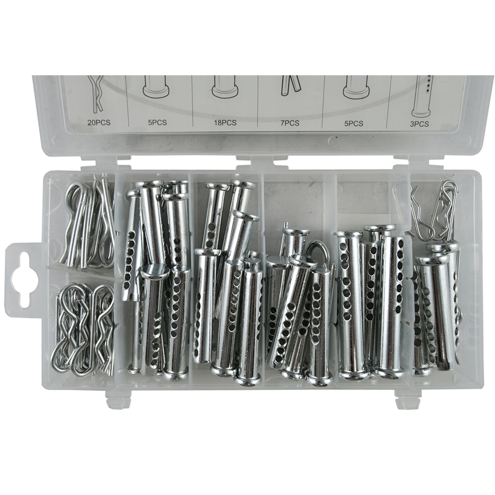 Caixa com 71 pinos de manilha e clipes "R".