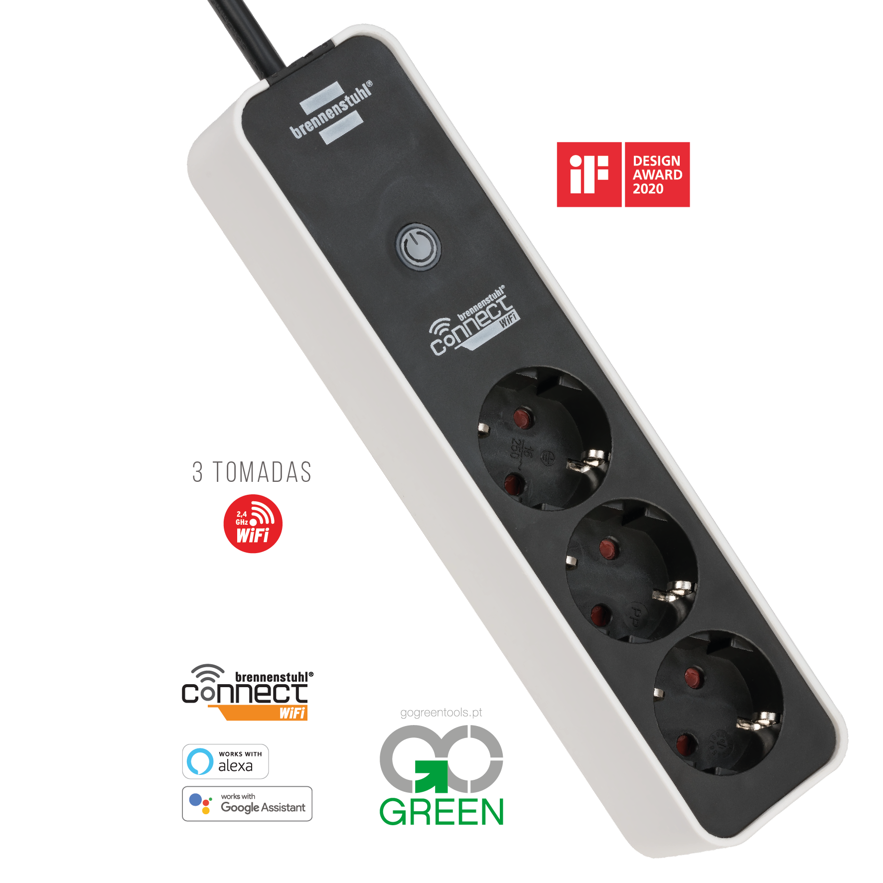 Com o filtro de linha inteligente de 3 vias, você pode controlar sua casa por comando de voz com Alexa e Google Assistant ou simplesmente por meio do aplicativo gratuito brennstuhl®Connect em seu smartphone. Crie horários flexíveis e funções de cronômetro e automatize de forma inteligente suas rotinas diárias e semanais. A tomada múltipla inteligente com módulo WiFi de 1 canal possui três tomadas com maior proteção ao toque em uma prática disposição de 45° e é compatível com qualquer marca de roteador e não requer hub. Ao conectar, certifique-se de selecionar a banda de 2,4 GHz. Também impressiona pelas seguintes propriedades: