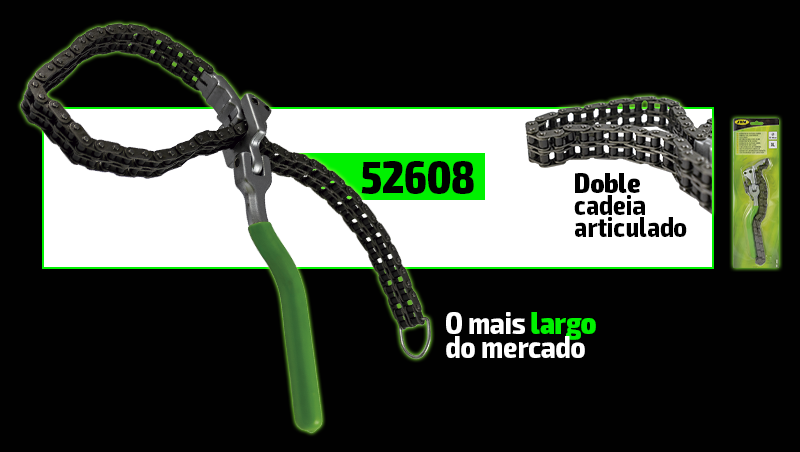 Chave corrente articulada com corrente preta e punho verde em fundo branco