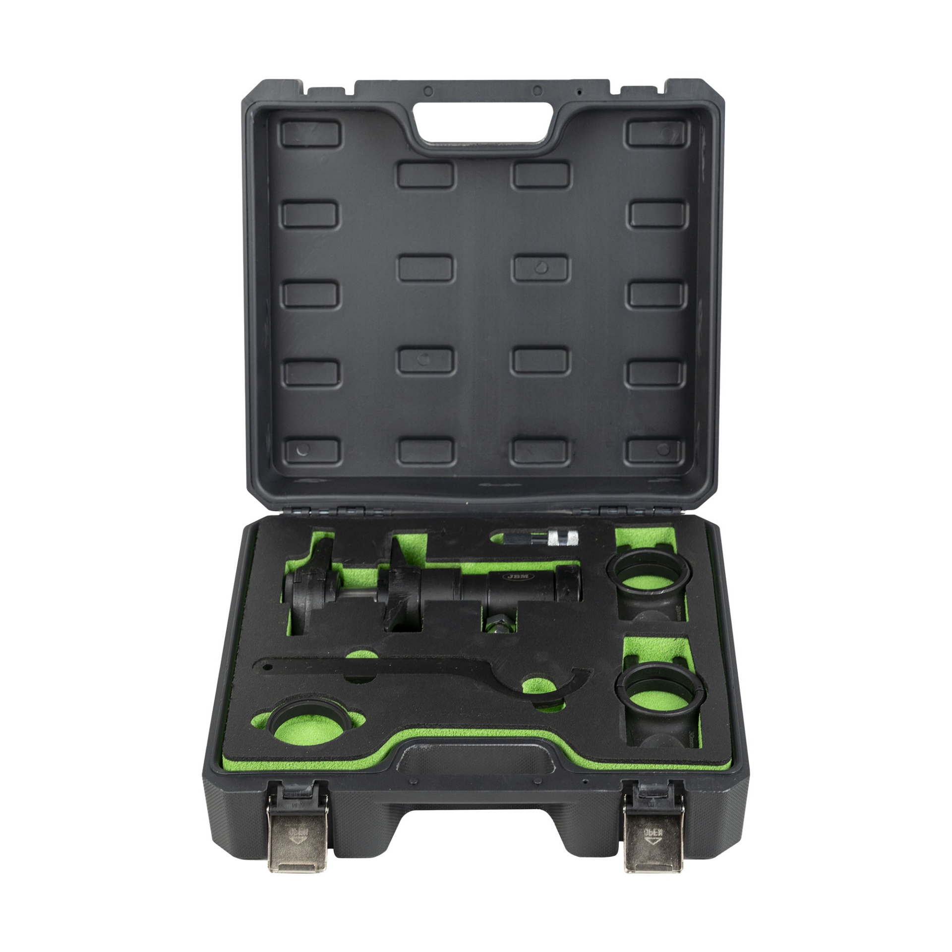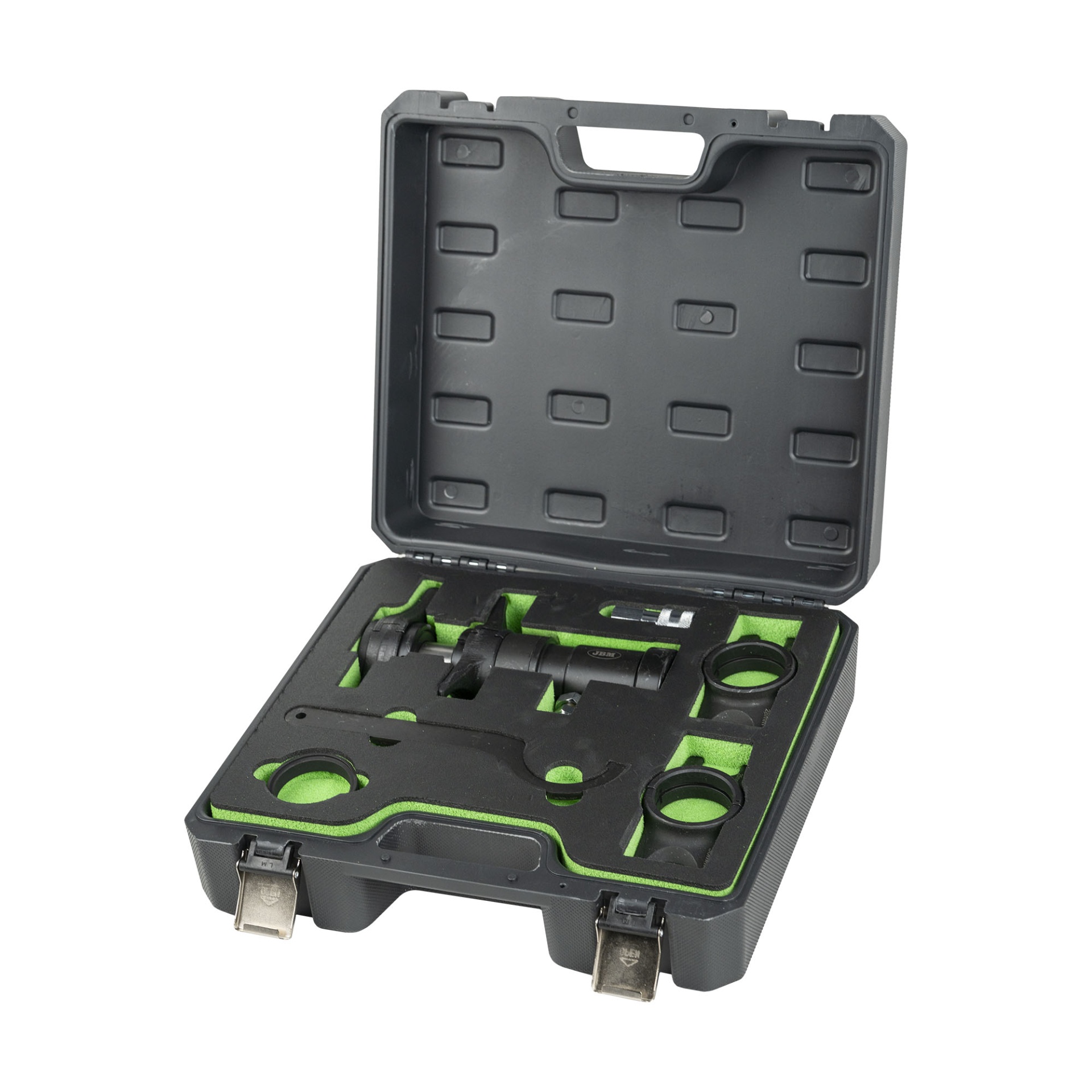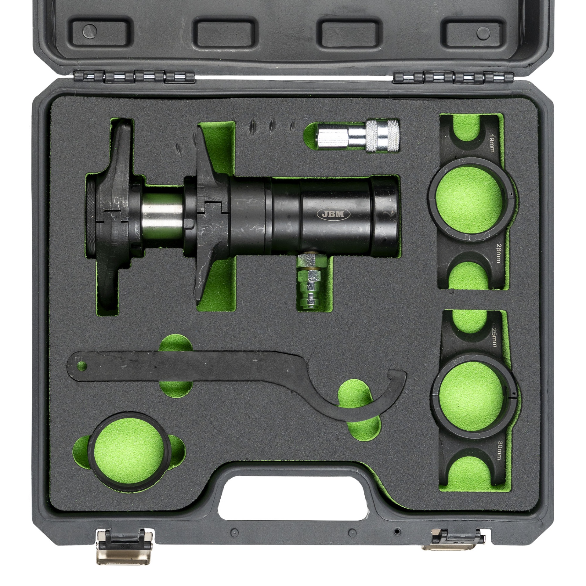 O conjunto inclui vários adaptadores de design otimizado que facilitam a remoção de buchas, graças à sua capacidade de compressão de até 4,5T, mesmo em espaços reduzidos. Foi projetado para ser utilizado com a bomba de referência 54742.