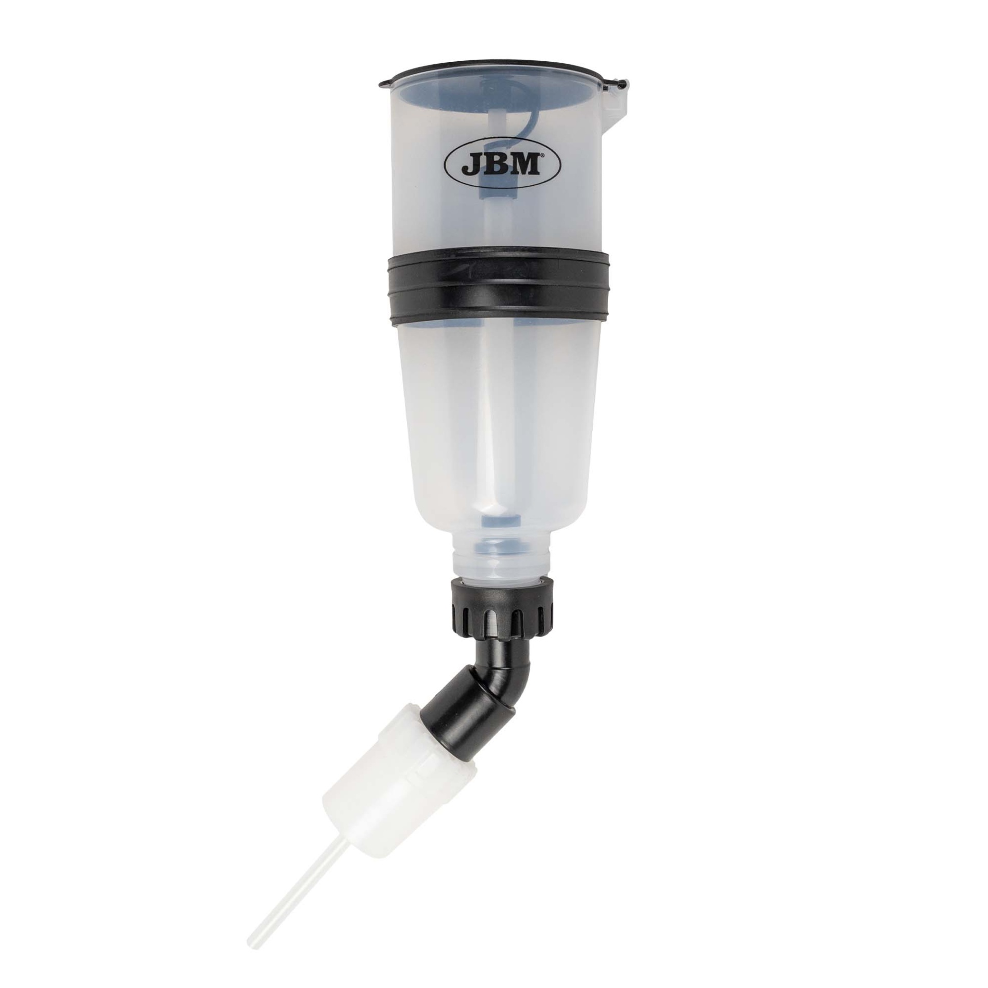 O JBM 54905 é um funil especializado concebido para facilitar o enchimento de tanques de AdBlue em veículos ligeiros e comerciais. Dado que muitos fabricantes colocam o bocal de enchimento em locais de difícil acesso (como a lateral do porta-bagagens ou junto ao bocal do diesel sob um ângulo apertado), este funil angular permite um fluxo contínuo sem derrames, garantindo que o produto químico corrosivo não entre em contacto com as superfícies do veículo.