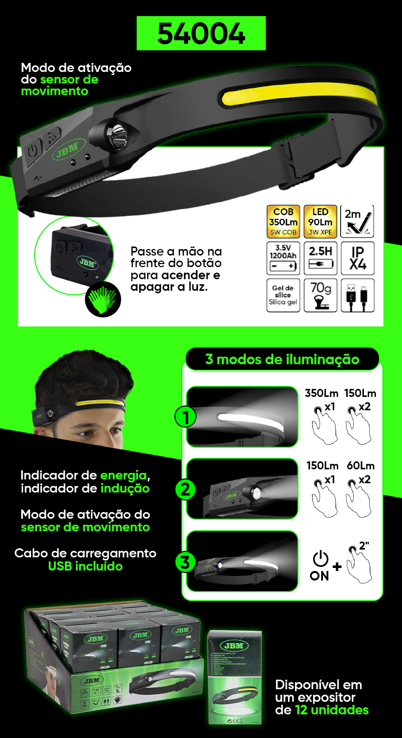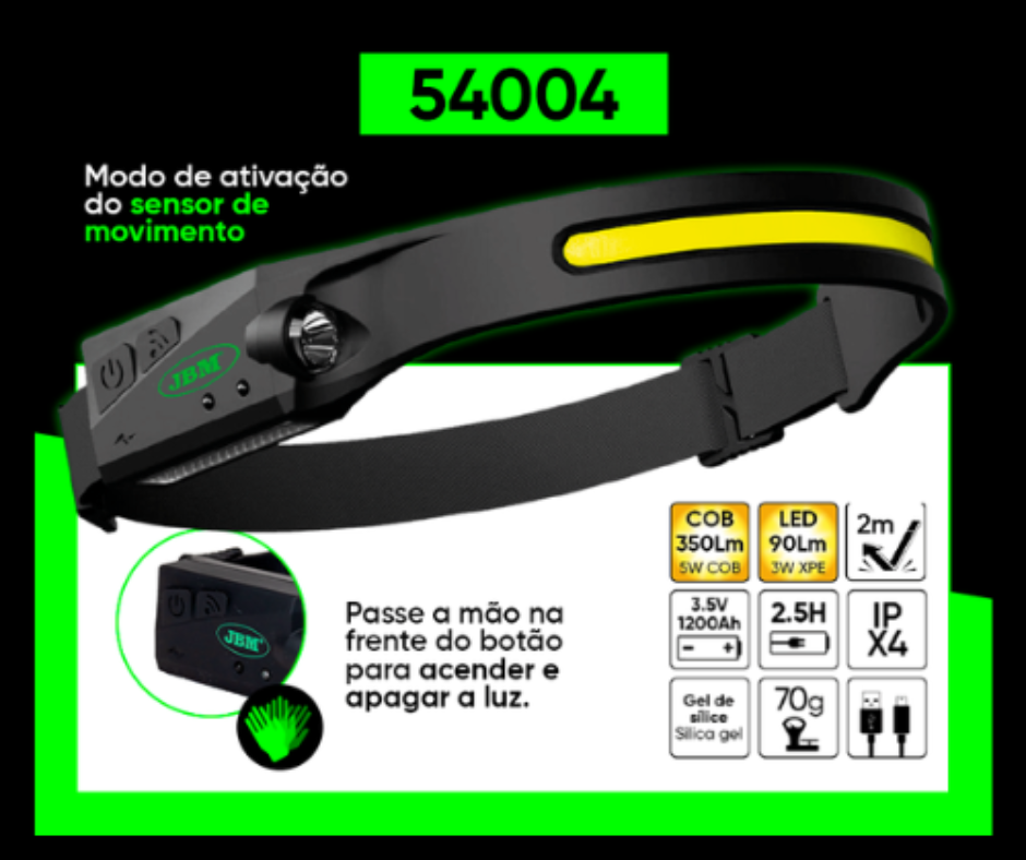 LANTERNA DE LUZ FRONTAL PARA A CABEÇA JBM COB | 54004