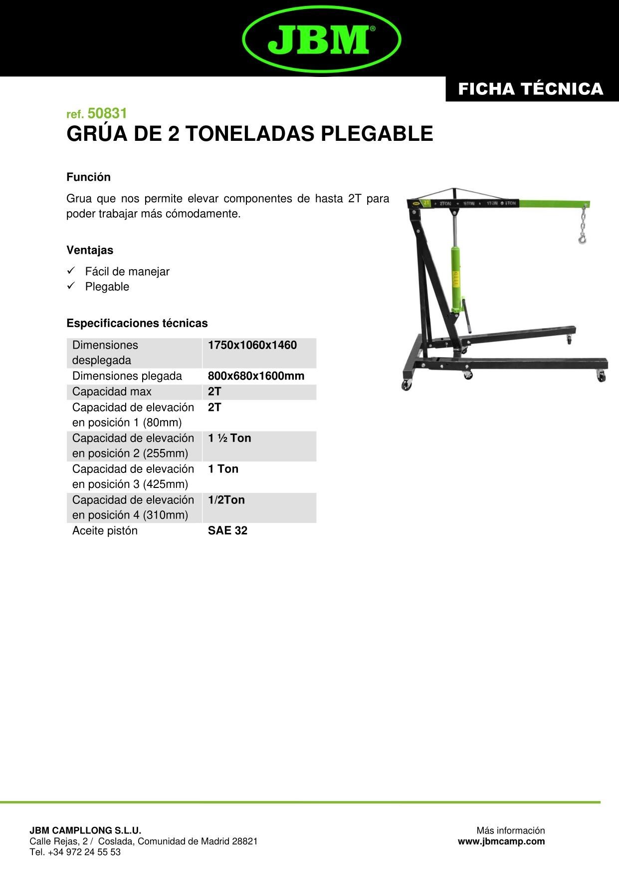 GRUA DE 2 TON DOBRÁVEL JBM 50831