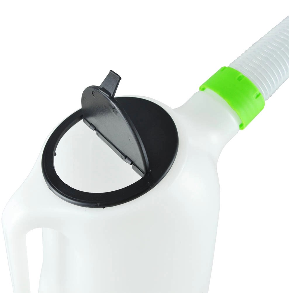 Recipiente branco de 5 litros com bico flexível e detalhes verdes