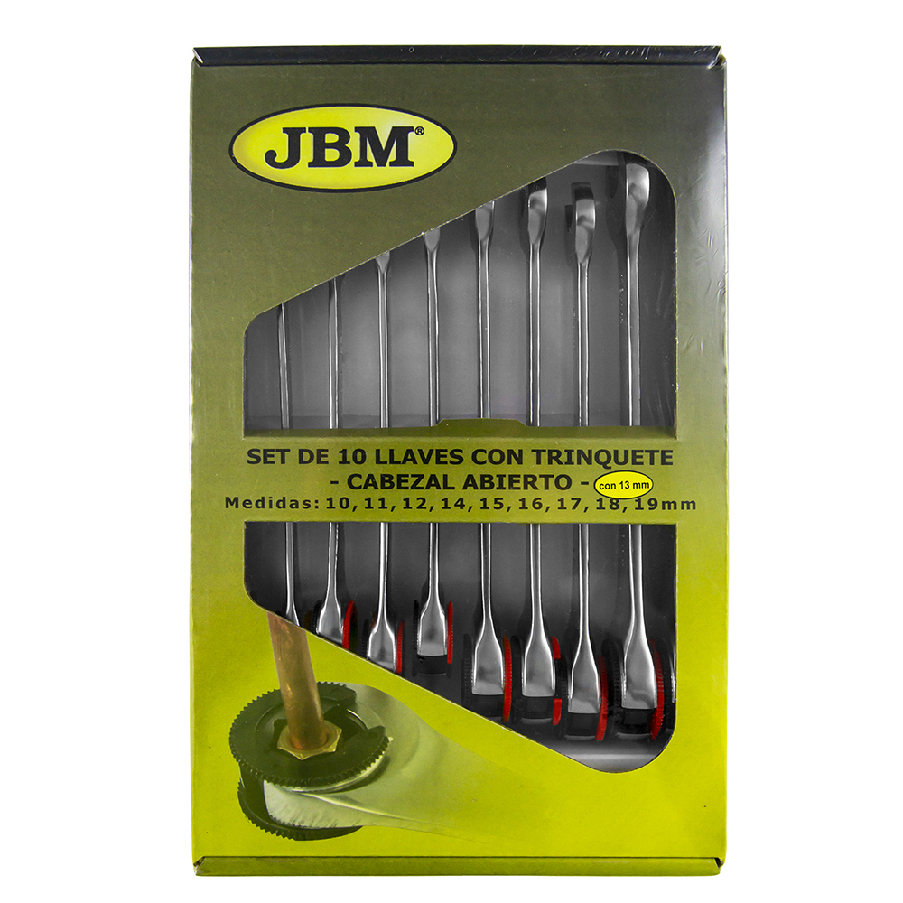 JOGO DE 10 CHAVES HEXAGONAIS COMBINADAS COM ROQUETE E FECHO DE CABEÇA ABERTA 51840