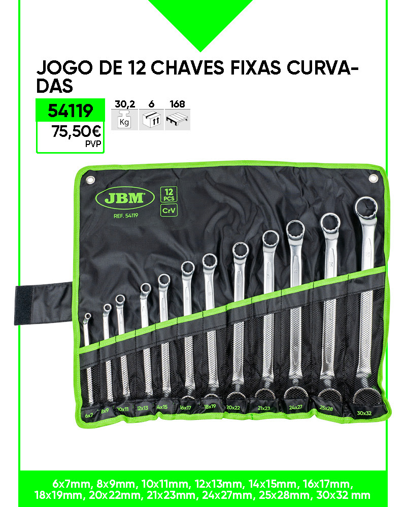 JOGO DE 12 CHAVES FIXAS CURVADAS JBM 54119