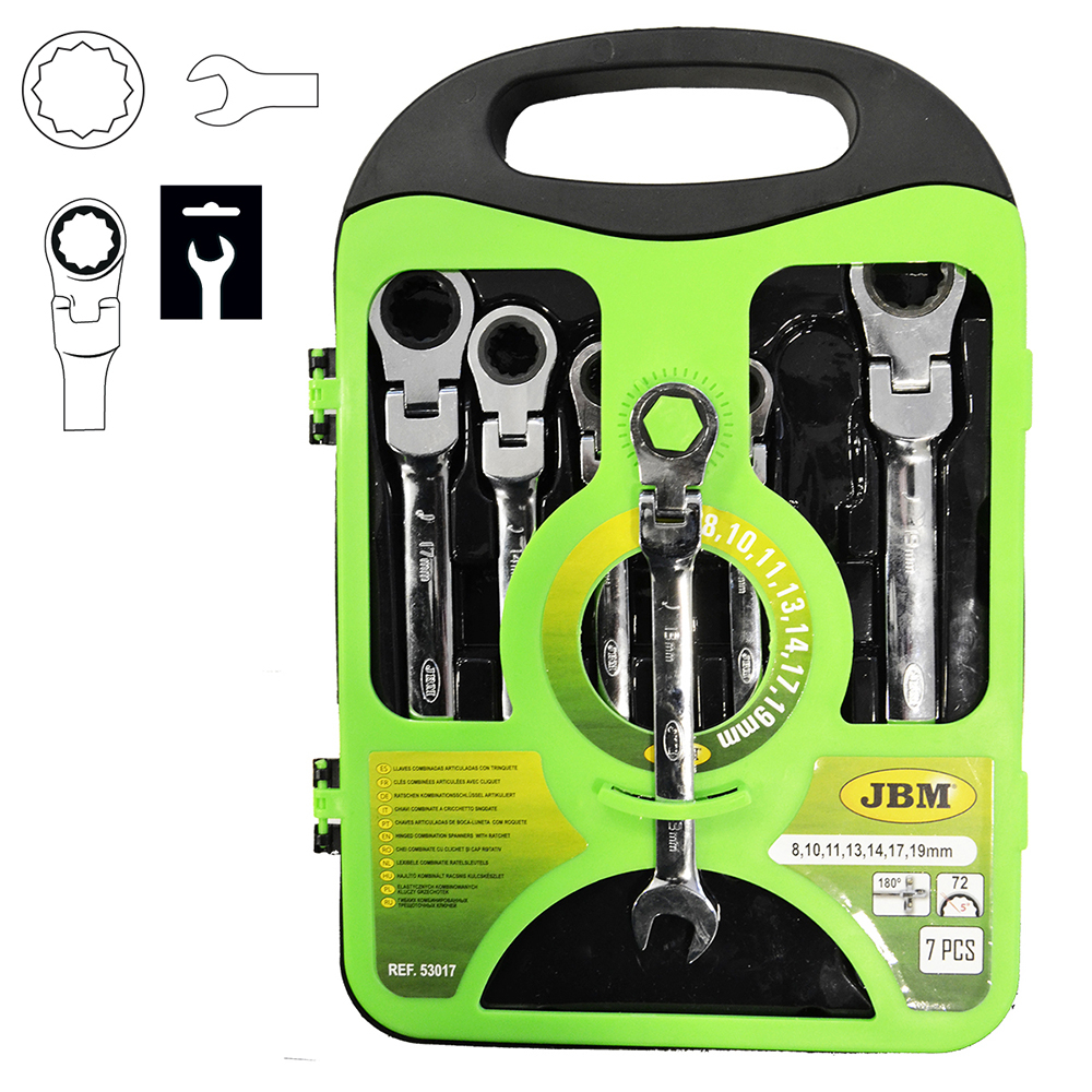 JOGO DE 7 CHAVES ARTICULADAS DE BOCA-LUNETA COM ROQUETE 53017