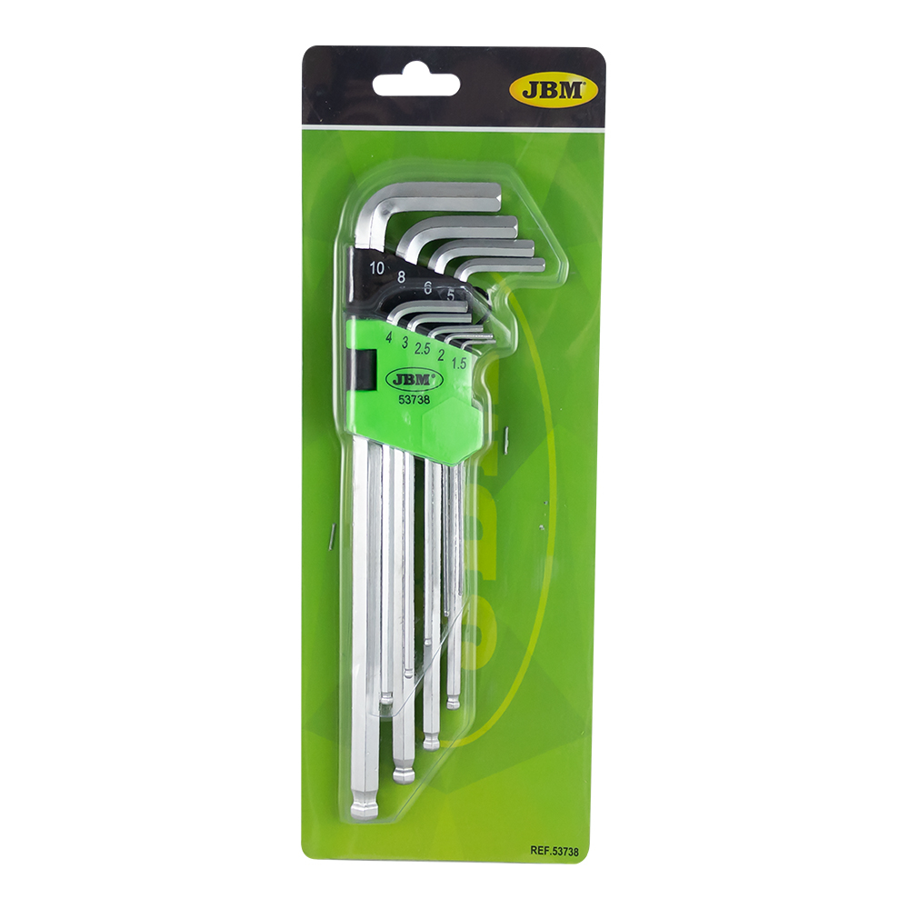 JOGO DE 9 CHAVES HEXAGONAIS EXTRA LONGAS 53738