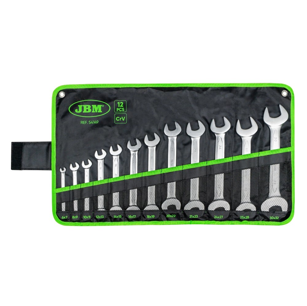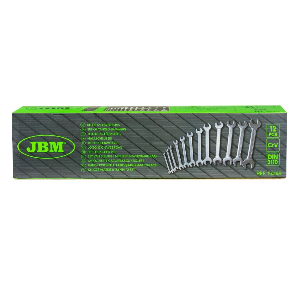 Conjunto de 12 chaves fixas JBM em embalagem preta e verde