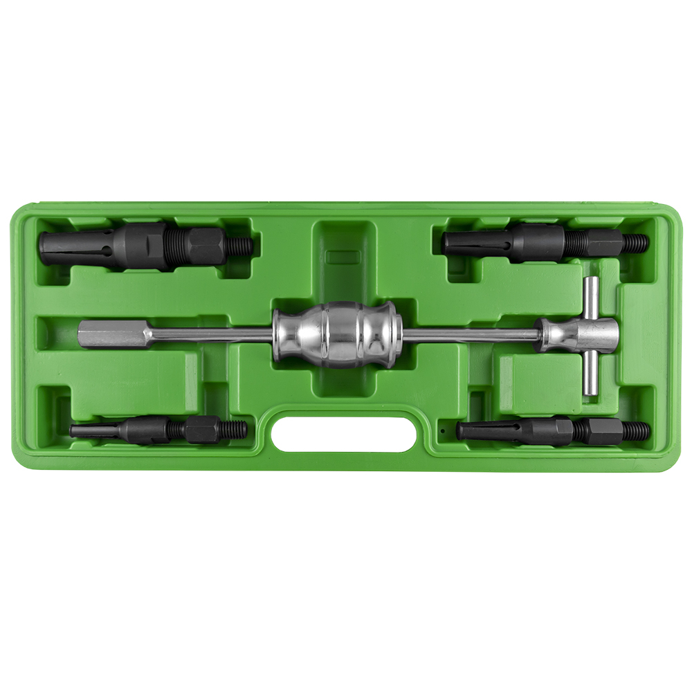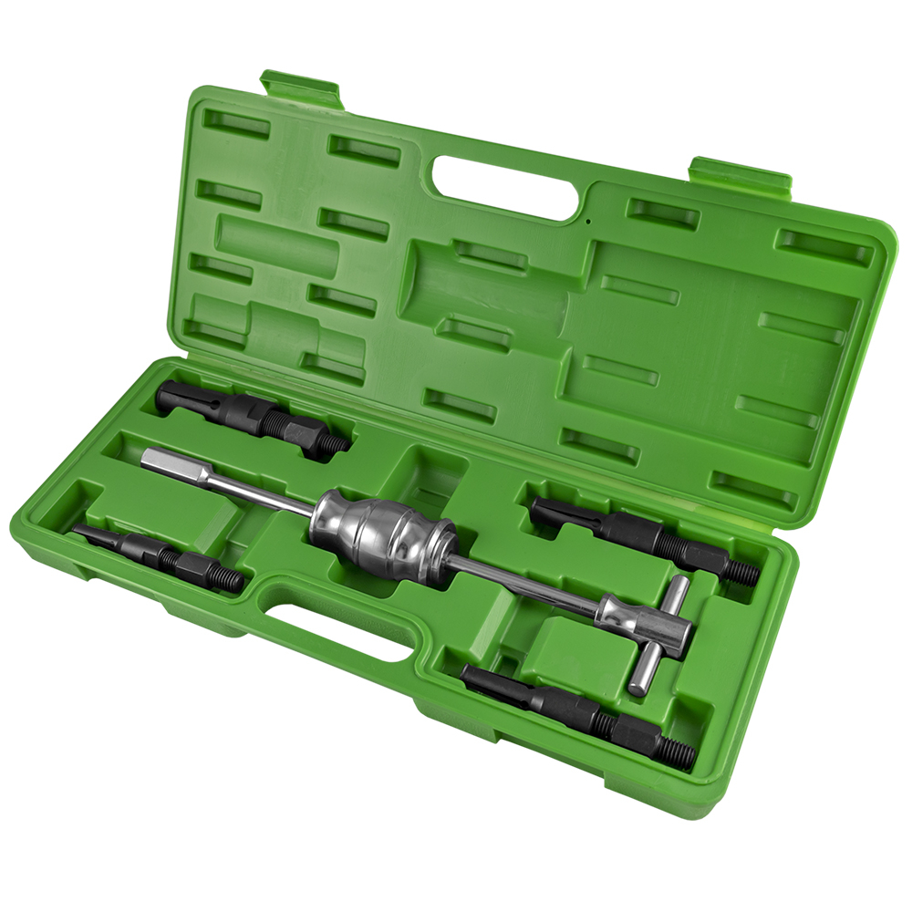 Conjunto de ferramenta com cabo metálico e adaptadores pretos para extração de rolamentos
