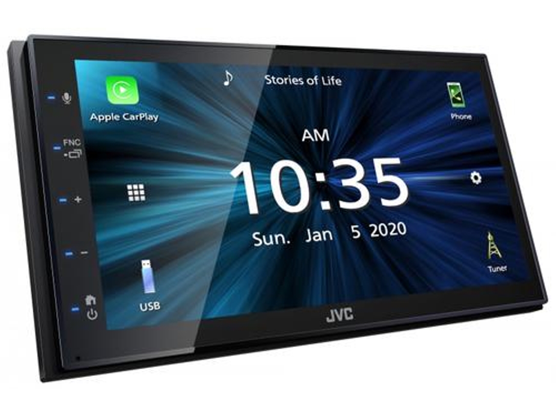 O receptor de mídia digital de corpo curto KW-M560DBT da JVC vem com tecnologia Bluetooth integrada para chamadas de viva-voz e streaming de música sem fio. Com espelhamento de tela do Android via aplicativos USB, como Waze Navigation e Google Maps, AndroidAuto ou Apple CarPLay podem ser exibidos e controlados por meio da tela de toque de 6,8". Uma câmera de visão traseira opcional pode ser conectada para estacionamento em ré. Esta unidade também inclui iPhone/iPod reprodução de música. Observe que não há mecanismo de CD incluído neste modelo. No entanto, isso nos permite reduzir a profundidade do produto para 75 mm, o que se encaixa em veículos com menos espaço de áudio no painel do que os produtos tradicionais.