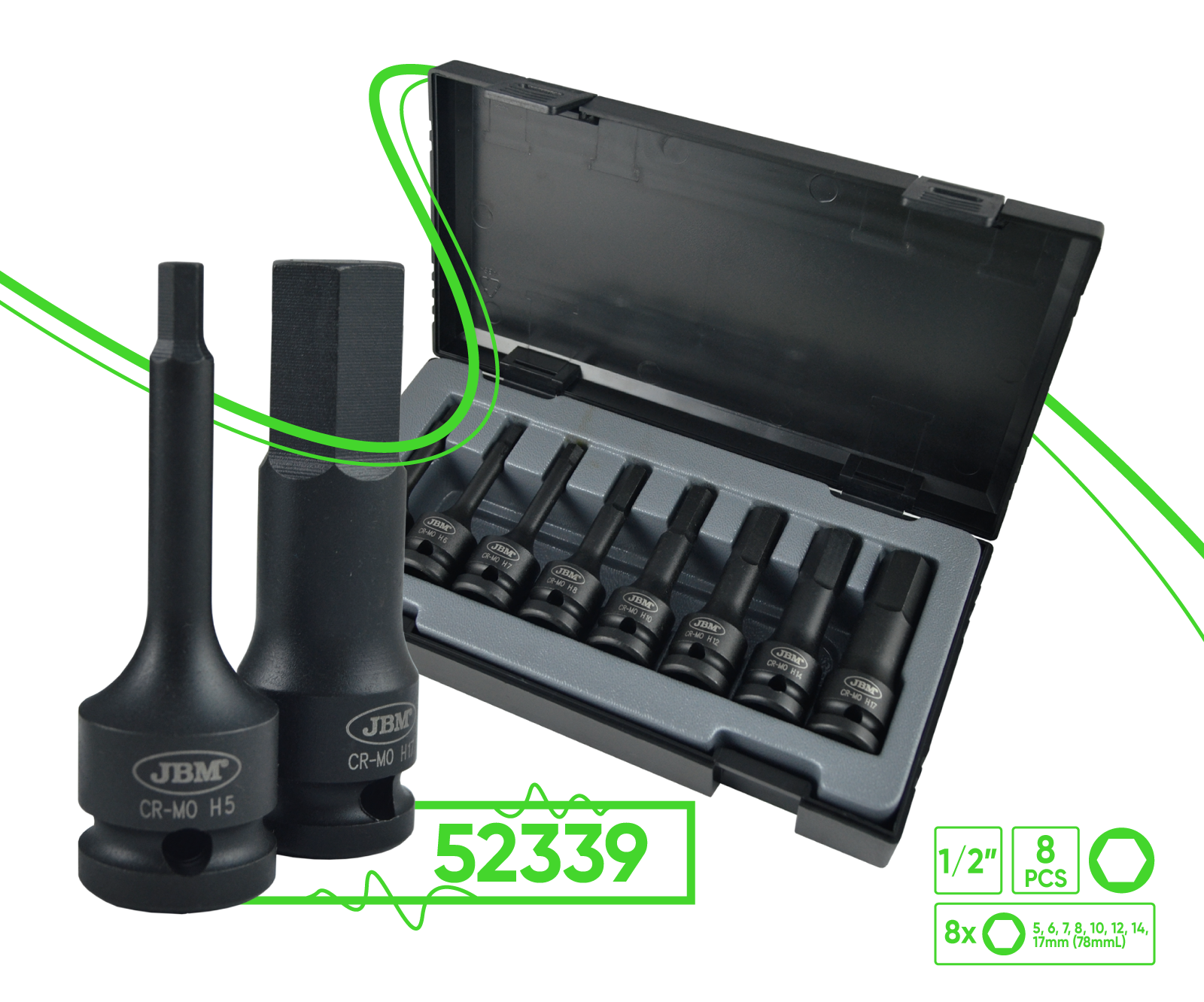 KIT DE 8 CHAVES DE IMPACTO HEX. DE 1/2” 52339
