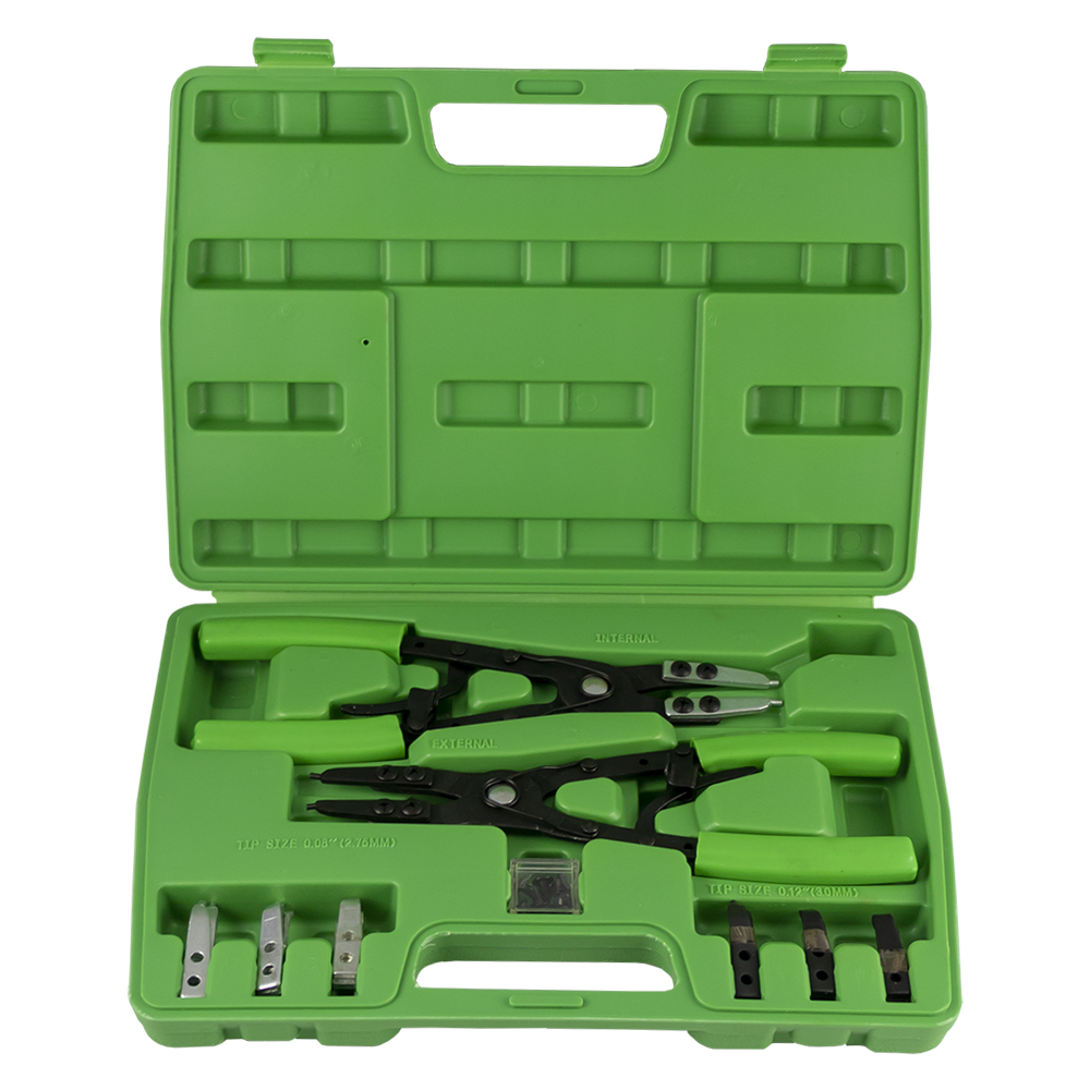 Conjunto de ferramentas com alicates e acessórios em estojo verde