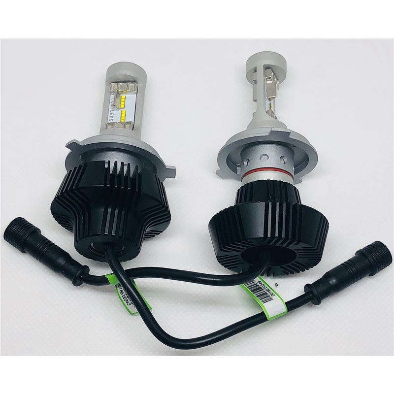 Par de faróis LED para carro com base cinzenta e dissipadores de calor pretos