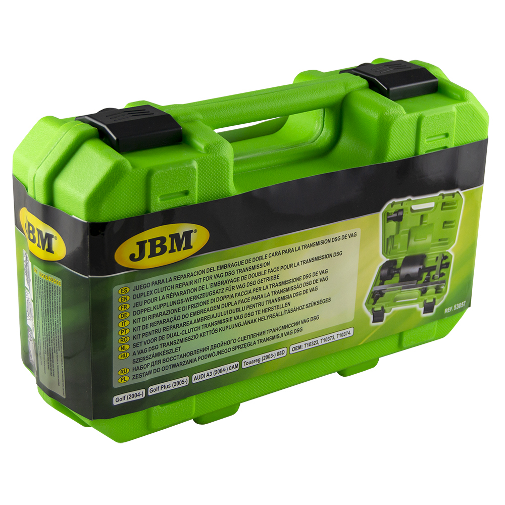 Para serviço em troca DSG em Golf (2004-), Golf Plus (2005-), AUDI A3 (2004-) com transmissão de 7 velocidades código 0AM, e em Touareg (2003-) com transmissão de 6 velocidades código 08D). Referencias OEM dos úteis T10323, T10373, T10374.