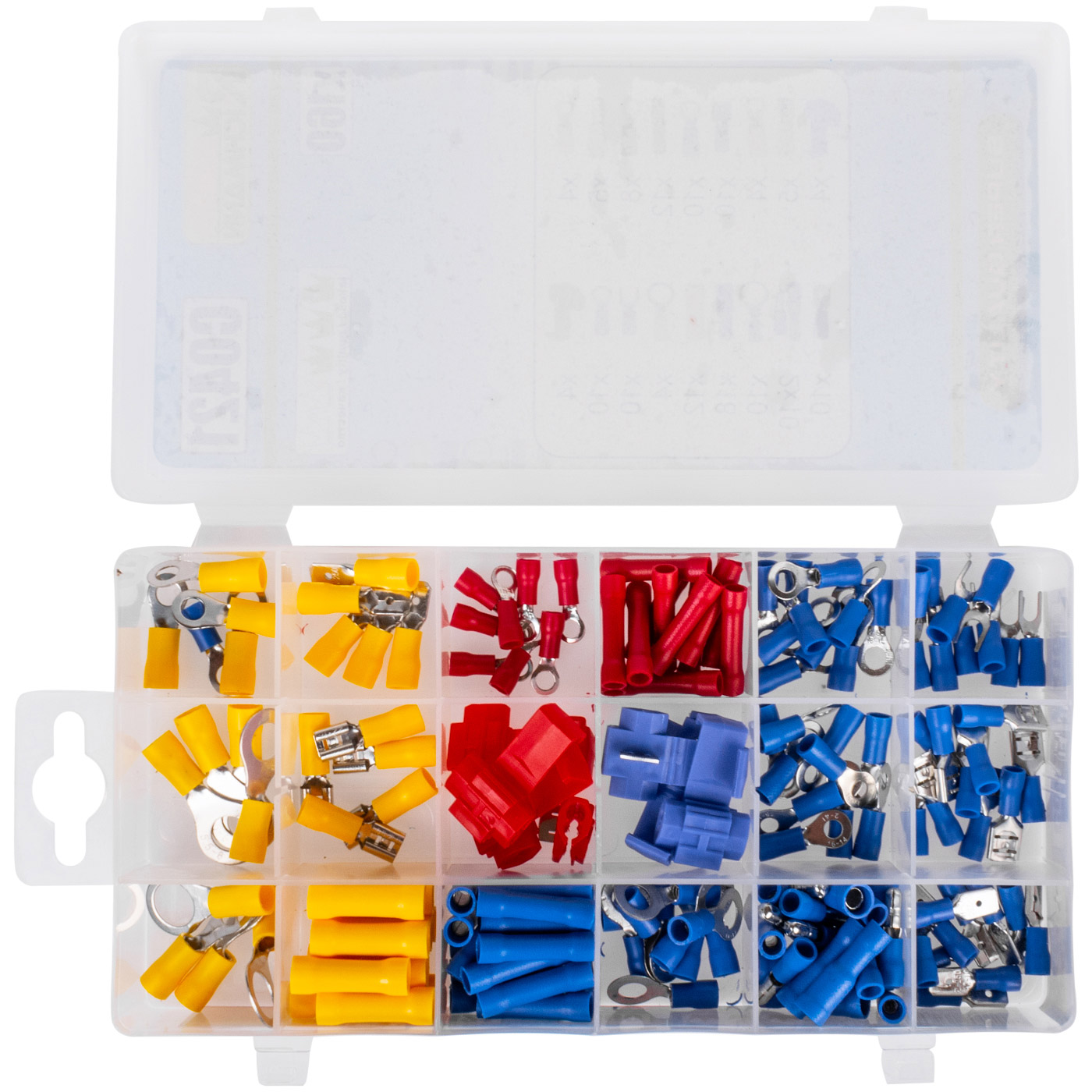 Um conjunto de 160 peças de pontas e conectores de cores diferentes para fios.