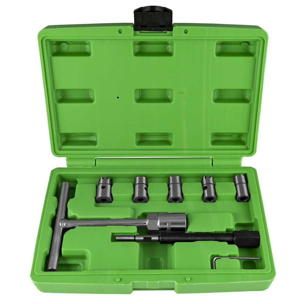 Fresa de 14 x 14 mm: Para aplicações universais. Fresa de 15 x 19 mm: Para diversas marcas. Fresa de 17 x 17 mm: Compatível com Delphi e Bosch (BMW, PSA, Renault, Ford). Fresa de 17 x 19 mm: Específica para Mercedes-Benz CDi. Fresa Angulada de 17 x 21 mm: Para modelos Fiat e Iveco. Punho em T e Chave Piloto: Para um guiamento preciso e sem esforço durante o corte. Limpadores e Adaptadores: Para garantir que o fundo da sede fica perfeitamente limpo.