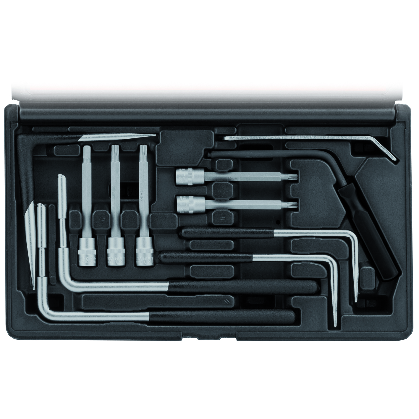 Conjunto de chaves de soquete em caixa preta com rótulo vermelho